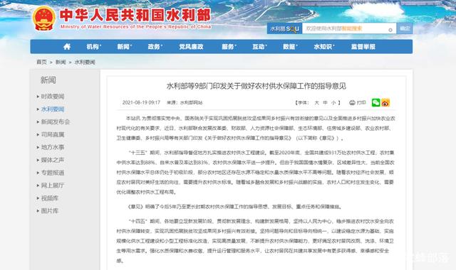 那对于农村用水,近来国家水利部等9个部门将在农村开展行动,目的就是为了改善农村的用水问题,从此次9部门印发的《关于做好农村供水保障工作的指导意见》中,小编了解到了一些关键信息,那《意见》中具体说了什么呢?又会对未来农村的用水有什么影响呢?下面我们一起来看看。