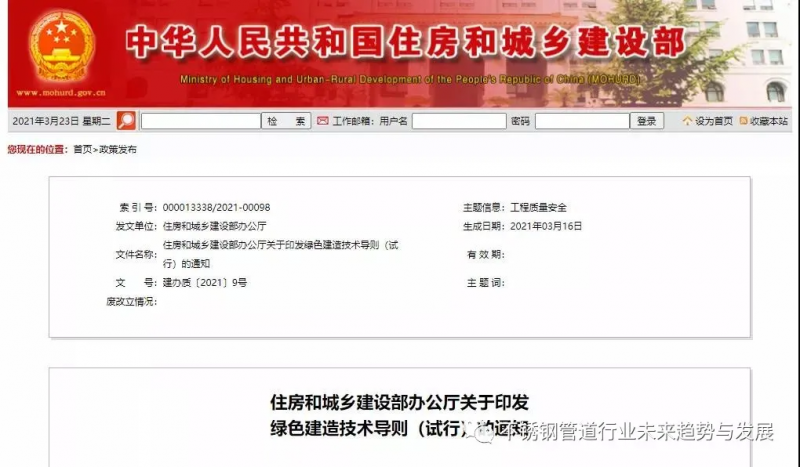 以建筑行业发展为例,为深入贯彻落实绿色发展理念、推进绿色建造、提升建筑工程品质、推动建筑业高质量发展,住房和城乡建设部3月组织编制印发了《绿色建造技术导则(试行)》。