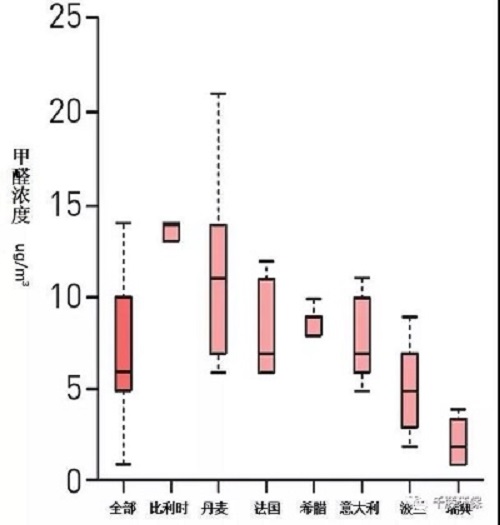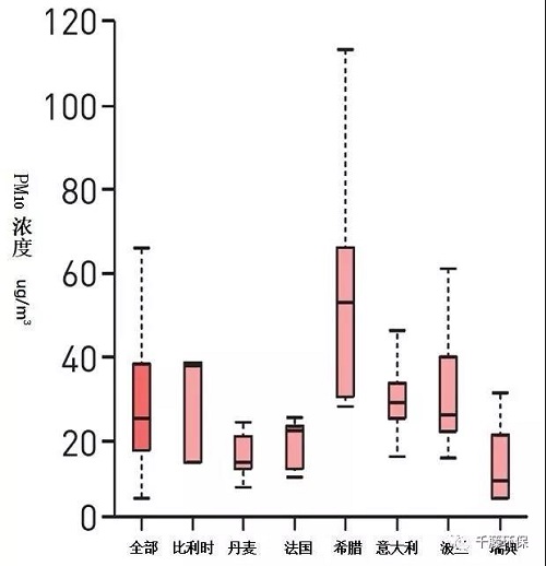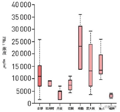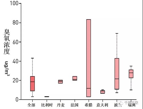 图2不同国家养老院二氧化氮浓度分布箱线图