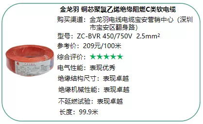 一、20款家装电线均符合相关标准要求;有15款获评五星:金龙羽、骏兴达、金环宇、奔达康、起帆、熊猫、飞雕、正泰、远东电缆、德力西、民兴电缆、昆电工、恒飞电缆、三红、五彩。