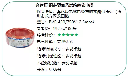 2021年家装电线比较试验总评表