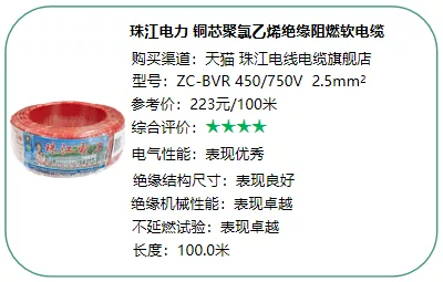 二、导体电阻越小越好,绝缘电阻越大越好。本次测评导体电阻最小的三款是熊猫、起帆和飞雕电线样品,绝缘电阻表现最好的是金龙羽和熊猫电线样品。