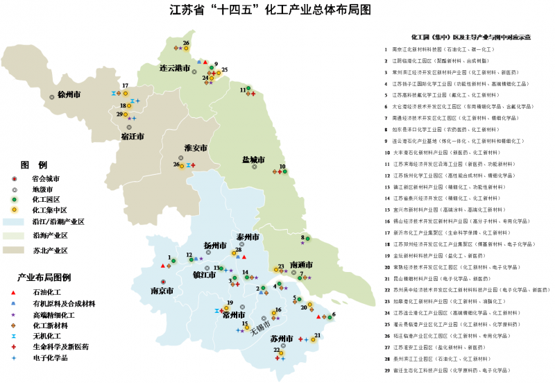 江苏省是我国化工大省,现已形成从炼油、乙烯生产到基础化学原料、合成材料、专用化学品制造等多门类产业体系,化工产业规模位居全国前列,在地方工业体系中占有重要地位,为江苏省经济社会健康发展做出了突出贡献。