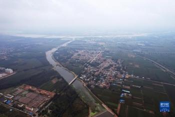 海子河畔负责处理化工园区污水的宁阳县磁窑镇污水处理厂(左下角)(9月2日摄,无人机照片)