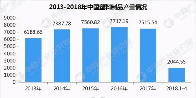 2018年,中国塑料制品产量为6042.15万吨,其中塑料管约1760万吨(2017年1636万吨)。