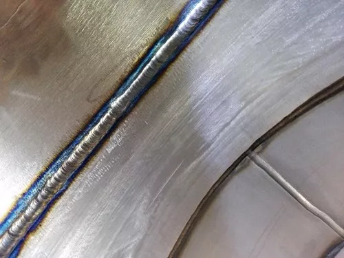 4)在填充和盖面层焊接时,焊接电流较大、焊接热输入大,或者层间温度高,焊道背面同样会氧化变色。