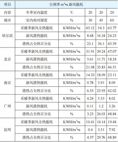 2.3 典型城市单位新风能耗计算分析(见表3)
