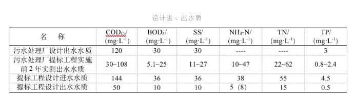 提标工程设计进水水质结合现状污水处理厂设计及实测出水水质取值;出水水质达到《城镇污水处理厂污染物排放标准》(GB 18918—2002)一级A标准,取值如表所示。