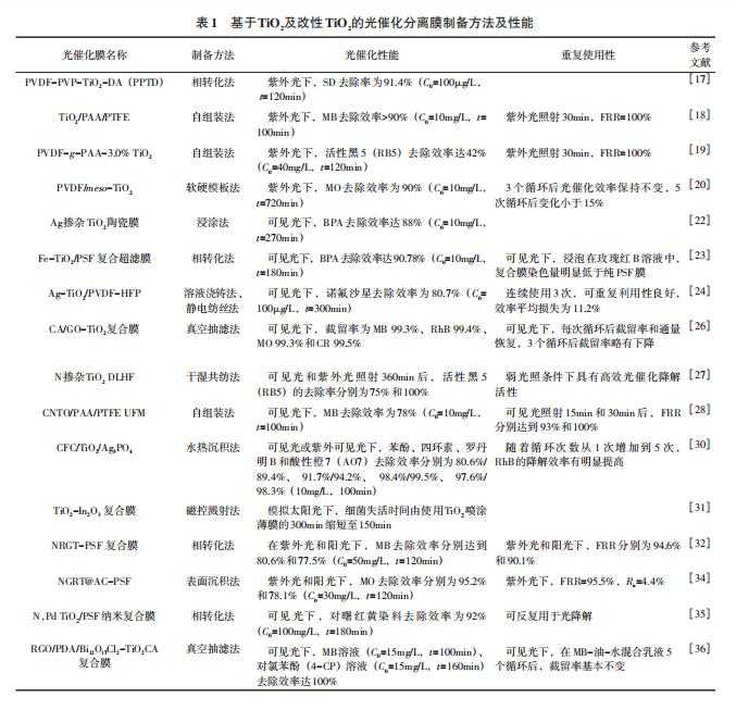 1.1 基于TiO2的紫外光响应光催化分离膜