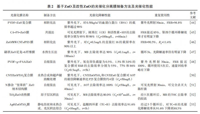 2 基于 ZnO 及改性 ZnO 的光催化分离膜