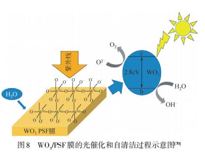 Shafaei等采用相转化法制备了含有不同浓度 WO3[0~2% (质量分数) ]的光催化自清洁 PSF 超滤膜,在 WO3的作用下,改性膜渗透性能及对垃圾渗滤液的化学需氧量 (COD)去除效果显著提高。