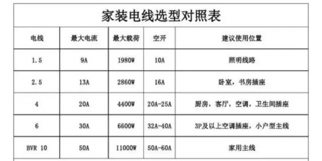 小编整理了一份家装电线.html'>家装电线选型对照表,大家可以参考一下。