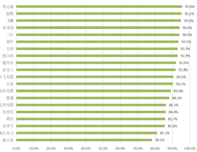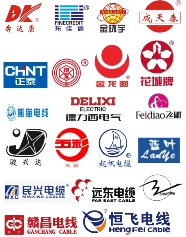 恒飞电缆、金龙羽、金环宇、起帆、熊猫、飞雕、三红、远东电缆、正泰、德力西、民兴电缆、奔达康、昆电工、骏兴达、五彩。