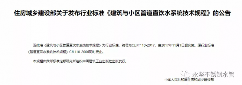 自住建部发布《建筑与小区管道直饮水系统技术规程》,取消使用塑料管,应使用不锈钢管等符合食品级要求的优质管材。不锈钢水管市场就迎来了政策的红利期。那不锈钢水管到底好在哪里呢?