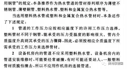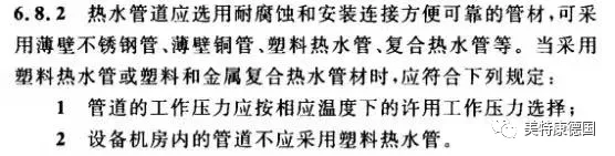 在2020年03月01日实施的国家强制性标准《GB 50015-2019建筑给水排水设计标准》的6.8.2条款最新规定:热水管道应选用耐腐蚀和安装连接方便可采用薄壁不锈钢管、薄壁铜管、塑料热水管、复合热水管等。本条推荐作为热水管道的管材排列顺序为薄壁不锈钢管、薄壁铜管、塑料热水管、塑料和金属复合热水管等。在本标准中强调,室内的给水管道,选用时应考虑其耐腐蚀性能,连接方便可靠,接口耐久不渗漏,管材的温度变形,抗老化性能等因素综合确定。这为城镇二次供水规模化采用不锈钢管提供了标准依据。