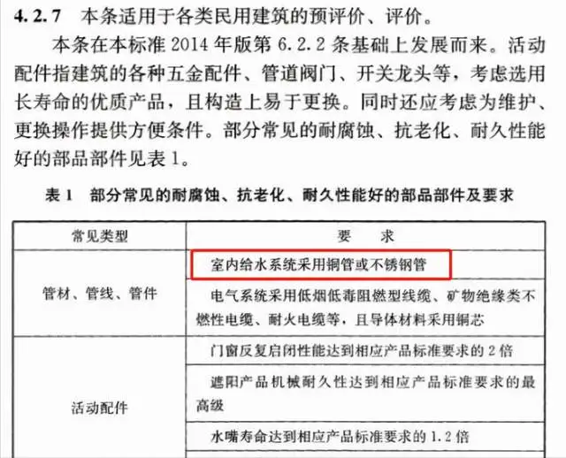在当年8月1日起开始实行的《绿色建筑评价标准》(GB/T50378-2019)中特别指出:室内给水管道要求采用不锈钢管材、管件。