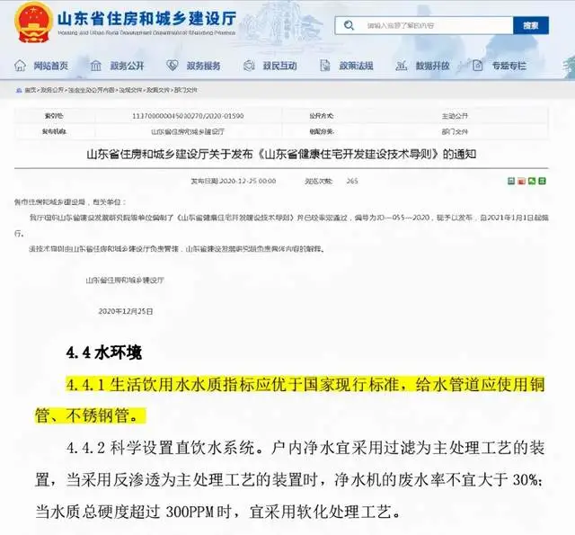 住房和城乡建设厅于1月建议健康住宅应使用不锈钢水管。