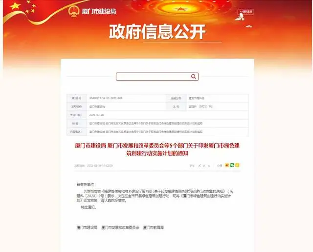 福建省厦门市建设局、市发改委等5部门日前联合印发《厦门市绿色建筑创建行动实施计划》(以下简称《实施计划》),在厦门市开展绿色建筑创建行动。目前2022年城镇新建民用建筑中绿色建筑占比75%以上。