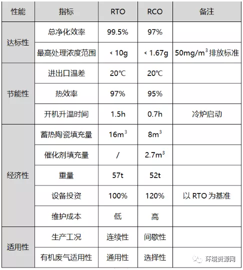 三、综合处理能力及成本分析 1)达标性 1 、RCO常用为堇青石陶瓷蜂窝为载体的贵金属蜂窝催化剂,贵金Pd、Pt为活性组分。由于催化剂对废气成分具有选择性,而烟包印刷采用多种成分溶剂混合使用,因此任何一种催化剂都不能确保所有成分VOC都能够彻底氧化分解。 2 、RCO处理VOC有机废气的综合净化效率最高97%,在保证非甲烷总烃排放浓度低于50mg/m³条件下, RCO对于浓度高于1.67g/m³的废气处理不能达标排放。 2)节能性 热效率是指,实际利用的热量与理论可利用总热量之比。 RTO炉体的表面热量损失和余热回用能力是影响其热效率的两个重要因素。经测试, RTO热效率为97%,RCO热效率为95%。 废气温度30℃,RCO氧化室温度450℃,进出口温差20℃,出口温度50℃;RCO热效率:=(450-50)/(450-30)=95.2%。 3)经济性 从设备制造的经济性能来看,RTO和RCO蓄热陶瓷填充量分别为16m³和8m³,但RCO还需填充2.7m³的催化剂(催化剂的空速按15000 /h选择,催化剂用量△=(风量÷空速)×10/12=2.4,考虑催化剂的实际填充情况,实际需要填充的催化剂在2.7m³)。普通品牌的贵金属催化剂的价格约17万元/m³;RCO与RTO的整体结构和其他配置基本相同,即RCO设备的投资约是RTO设备的1.2倍。 RCO催化剂的使用寿命为8000-10000小时,如生产工况为24h,280天/年,即催化剂的寿命约1.5年,陶瓷蓄热体的寿命在约8年。RTO因更换陶瓷蓄热体的维护费用约2.4万元/年,RCO因更换催化剂和陶瓷蓄热体需要的维护费用约31.8万元/年,RCO其他部件的维护和RTO相同。 4)适用性 RTO适用于连续性排放浓度较高的生产工艺废气处理,对于生产工艺中挥发的所有VOCS有机废气都可有效处理;