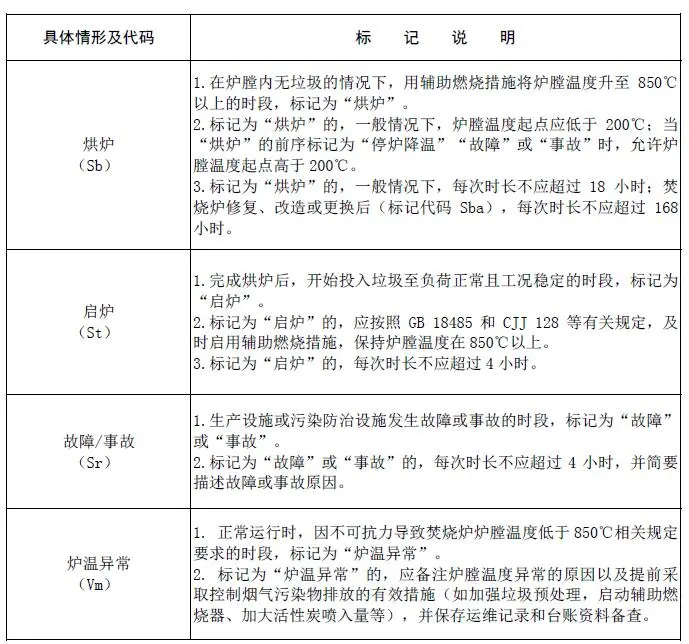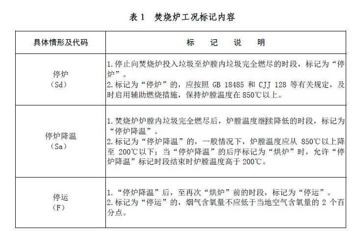 4.3 焚烧炉工况发生变化时,应按照表1 及时进行焚烧炉工况标记;未作标记的,焚烧炉视为正常运行。