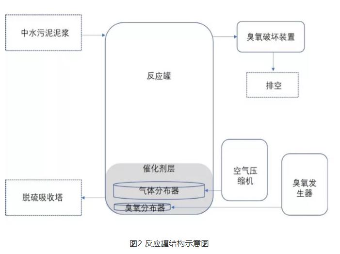 每个反应罐底部设置一个臭氧分布器和一个空气分布器,反应结束后的气体由顶部的臭氧破坏装置处理后排放。