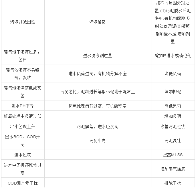 (1)维持曝气池合适的溶解氧,一般控制1-4mg/l,正常状态下监测曝气池出水端DO 2mg/l为宜;
