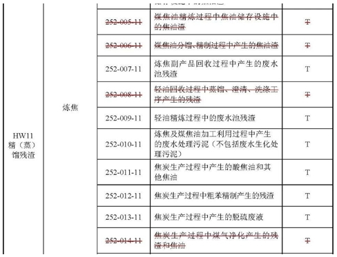 4.修改煤焦化相关危险废物的规定。针对该类废物重点从两个方面进行修改:一是重新梳理并明确了煤焦化过程产生的各类危险废物及其工艺来源;二是根据不同煤焦油的利用途径,在《危险废物豁免管理清单》中增加当煤焦油用于生产煤基氢化油、碳素材料、炭黑时,满足一定条件利用过程可不按危险废物管理的规定。
