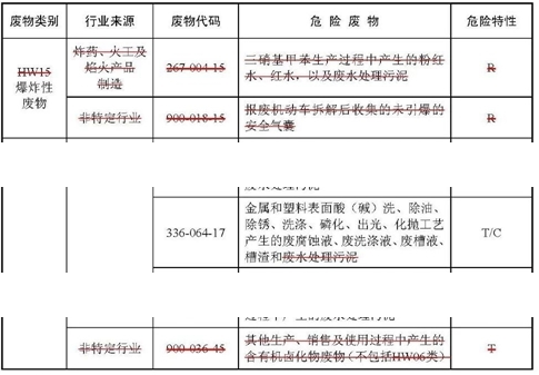 此外,修改了69 种危险废物的文字表述或危险特性表述。