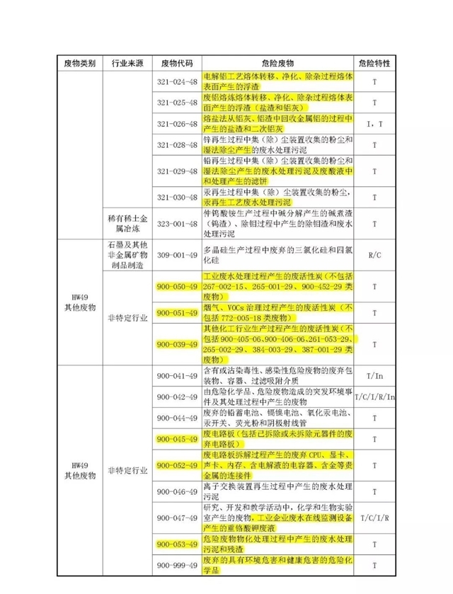6.修改铝冶炼相关危险废物的规定。2016 年版《名录》对铝冶炼过程产生的危险废物类型及产生工艺描述不清,本次修订过程中对铝冶炼过程中产生的危险废物进行了重新梳理,调查分析了其危险特性,明确了铝冶炼过程产生的危险废物种类及其工艺来源和危险特性。