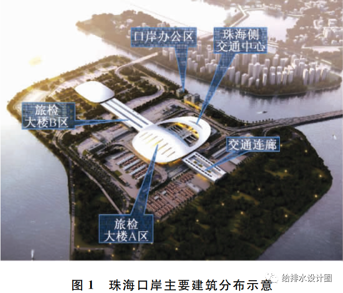 (1)由于口岸位于海上人工岛上,珠海地处台风频发地区,雨水排水设计采取一系列针对措施,包括:遵循“高水高排,低水低排”的雨水排水策略;从严确定重现期标准;围绕核心区重点建筑群,紧密结合建筑特点,有的放矢的灵活运用压力流屋面雨水排水、明沟排水、潜水泵加压提升排水等多种技术措施,建立人工岛整体排水防涝体系。