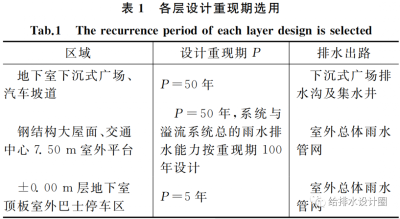 充分考虑了珠海台风暴雨多的特点,鉴于项目的特点及安全性、可靠性,设计雨水重现期采用规范的上限值(见表1)。