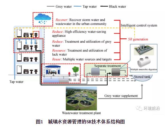 城镇水资源管理的5R技术体系包括回收(Recover)、减量(Reduce)、循环(Recycle)、资源化(Resource)、回用(Reuse)五个部分。