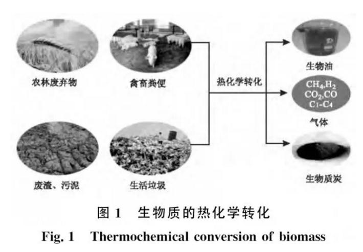 生物质转化利用途径主要有3类,即生物转换、物理转化和化学转化,比如生物质堆肥、直接燃烧、发酵制沼气、热化学转化制备柴油、乙醇燃料以及生物质炭等。直接燃烧生物质利用率较低,堆肥或发酵容易引起沼气泄露及二次污染,所以生物质的热化学转化(图1)成为了当下研究的重点。