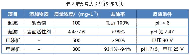 表 3为超滤和电渗析技术除铅效果和反应条件,可见超滤经强化后的去除效果明显高于电渗析,在除铅领域的应用前景更广阔。