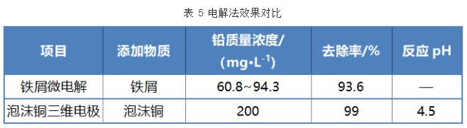 对不同电解法的去除效果进行了比较,见表 5。三维电极的去除率能够达到99%,明显高于传统电解法。