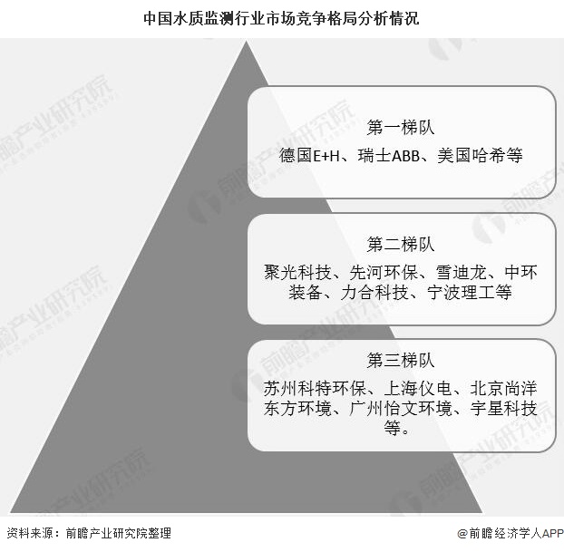 随着国家对水质监测要求的提高,行业中现有企业不断提升产品的技术含量,企业之间竞争程度越来越激烈。目前我国水质监测的市场竞争格局大致可以分为三个层次: