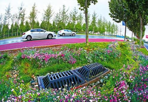 (1)雨水花园设计。如果城市园区中可以建设一些灌木、乔木等植物,那么就可以发挥植物根系的作用来提升雨水滞留作用。在设计雨水花园期间,可以降低地表径流量,实现对地下水资源的涵养,同时也可以发挥各种植物根系的降解作用和吸附作用来减弱水循环污染作用,确保雨水更好地渗透入地下,避免城市在暴雨天气下出现积水问题。