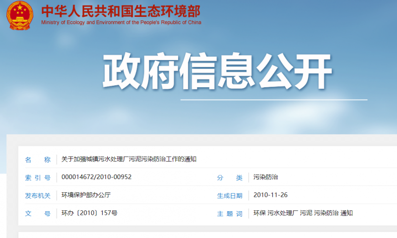 (十二)关于加强城镇污水处理厂污泥污染防治工作的通知(环办〔2010〕157号)(通知全文见附件)