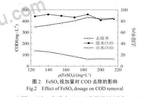2.2 FeSO4投加量对COD去除的影响