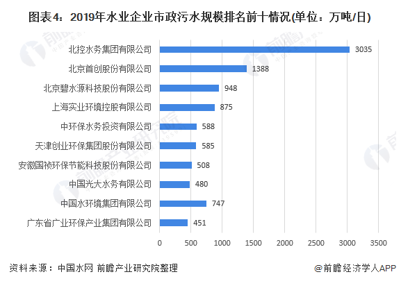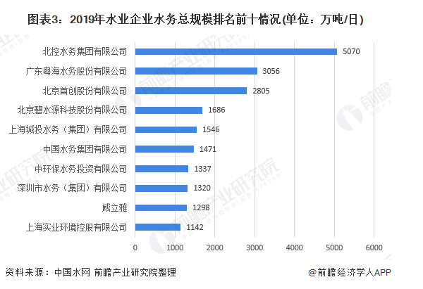 北控水务、粤海水务、首创股份等企业规模排名靠前